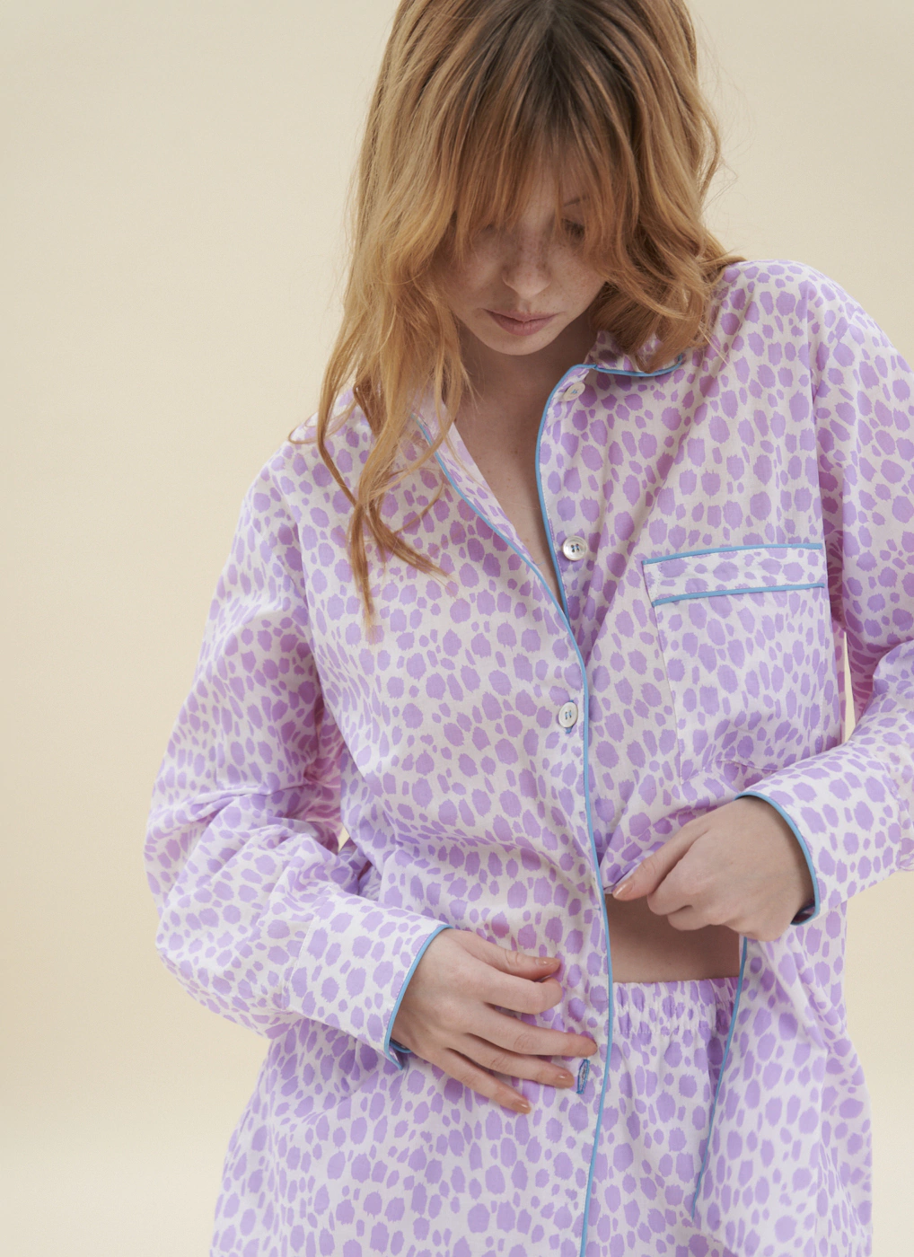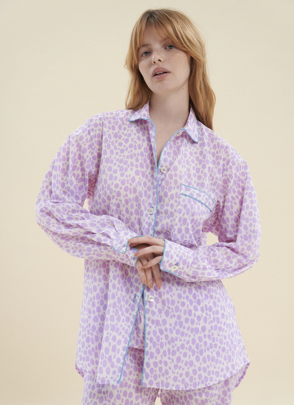 Loose-fitting long-sleeved shirt made of 100% printed cotton voile.