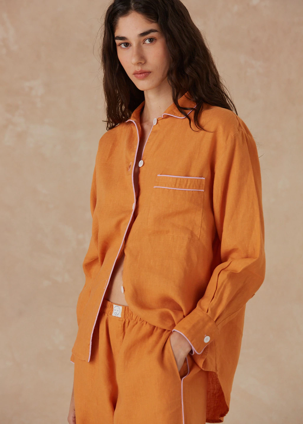 It is made of 100% washed linen, so it does not shrink and you can wash it in the machine (always with cold water).